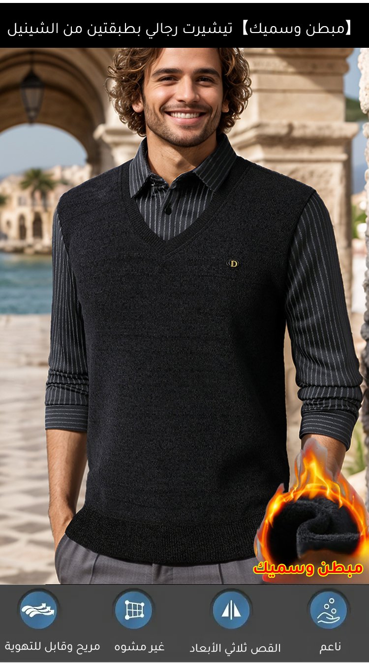【مبطن وسميك】تيشيرت رجالي بطبقتين من الشينيل