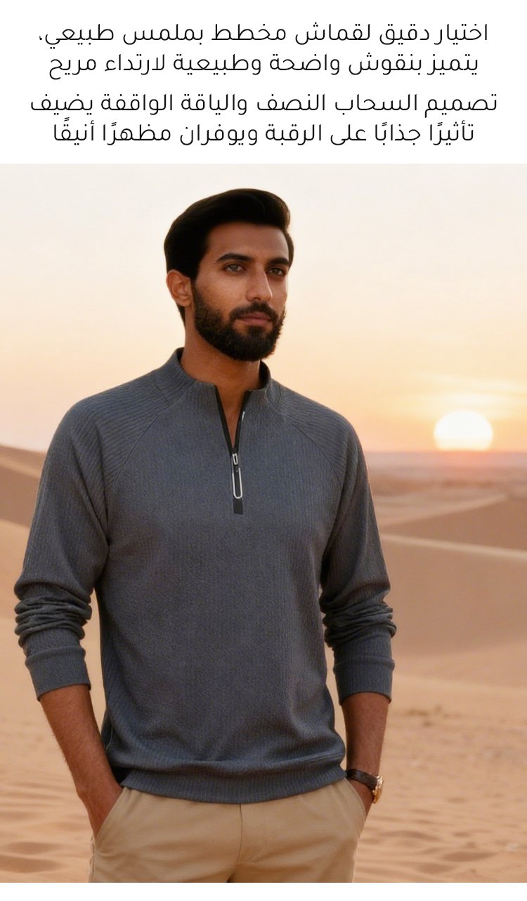 قميص ذو أكمام طويلة يجمع بين الراحة والأناقة، مصنوع من قماش ناعم وقابل للتنفس يمنحك شعورًا بالراحة المطلقة. التصميم الفريد للسحاب يضيف لمسة عصرية تجعلك أنيقًا ومميزًا. هيا بسرعة واختره الآن!